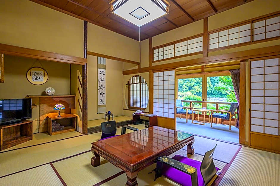 This suite's special features are the hot tub and the private open-air bath. This suite consists of 1 living room, 1 separate bedroom and 1 bathroom with a bath and free toiletries. The air-conditioned suite provides a flat-screen TV, tatami, a safe deposit box and an electric kettle. The unit offers 6 futons.