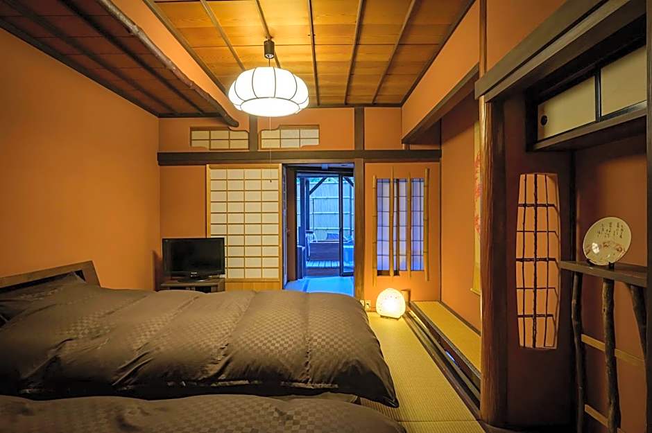 This suite's special feature is the hot tub. This suite consists of 1 living room, 1 separate bedroom and 1 bathroom with a bath and free toiletries. The air-conditioned suite provides a flat-screen TV, tatami, a coffee machine, a safe deposit box as well as river views. The unit offers 2 beds and 2 futons.